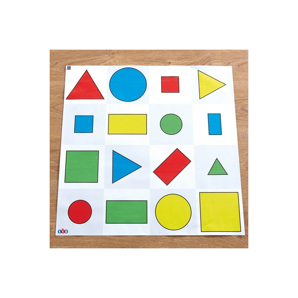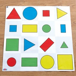 Podkładka do zabawy robotami Bee-Bot i Blue-Bot. Motyw jest ukierunkowany na ćwiczenie rozpoznawania kolorów i kształtów. Podkładka jest wykonana z winylu i PCV i można jej używać także na zewnątrz.