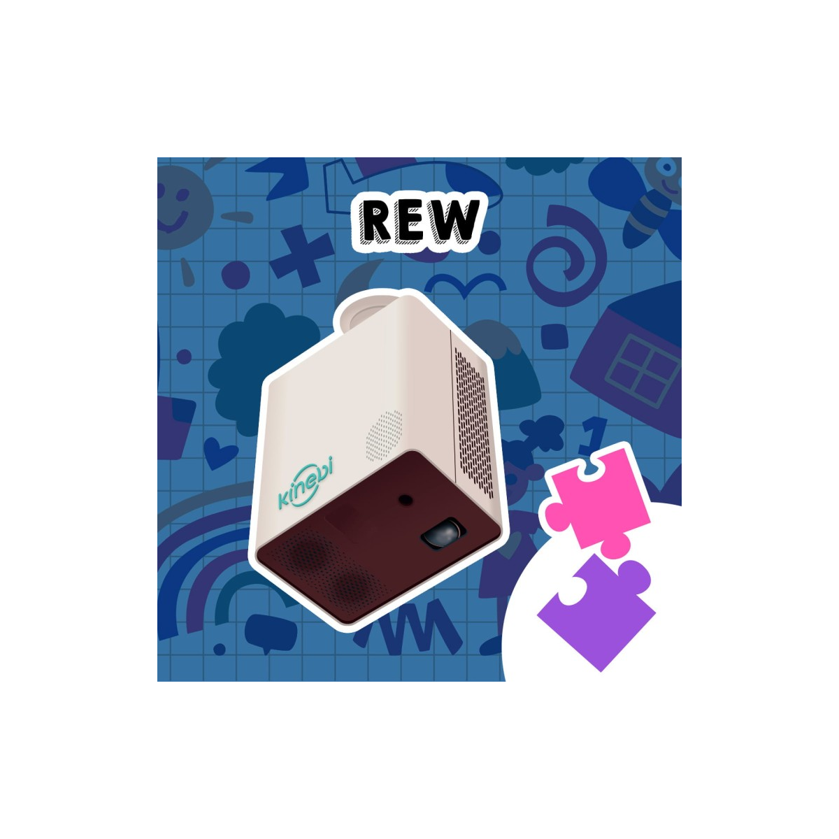 Magiczny Dywan 5.0 Kinebi REW – PC z oprogramowaniem systemowym wraz z projektorem (WXGA - lampa), czujnikiem ruchu, WiFi. W zestawie pakiet 10 aplikacji i gier EVO "START" oraz dedykowany pakiet 16 aplikacji rewalidacyjnych dla dzieci ze specjalnymi potrzebami REW.